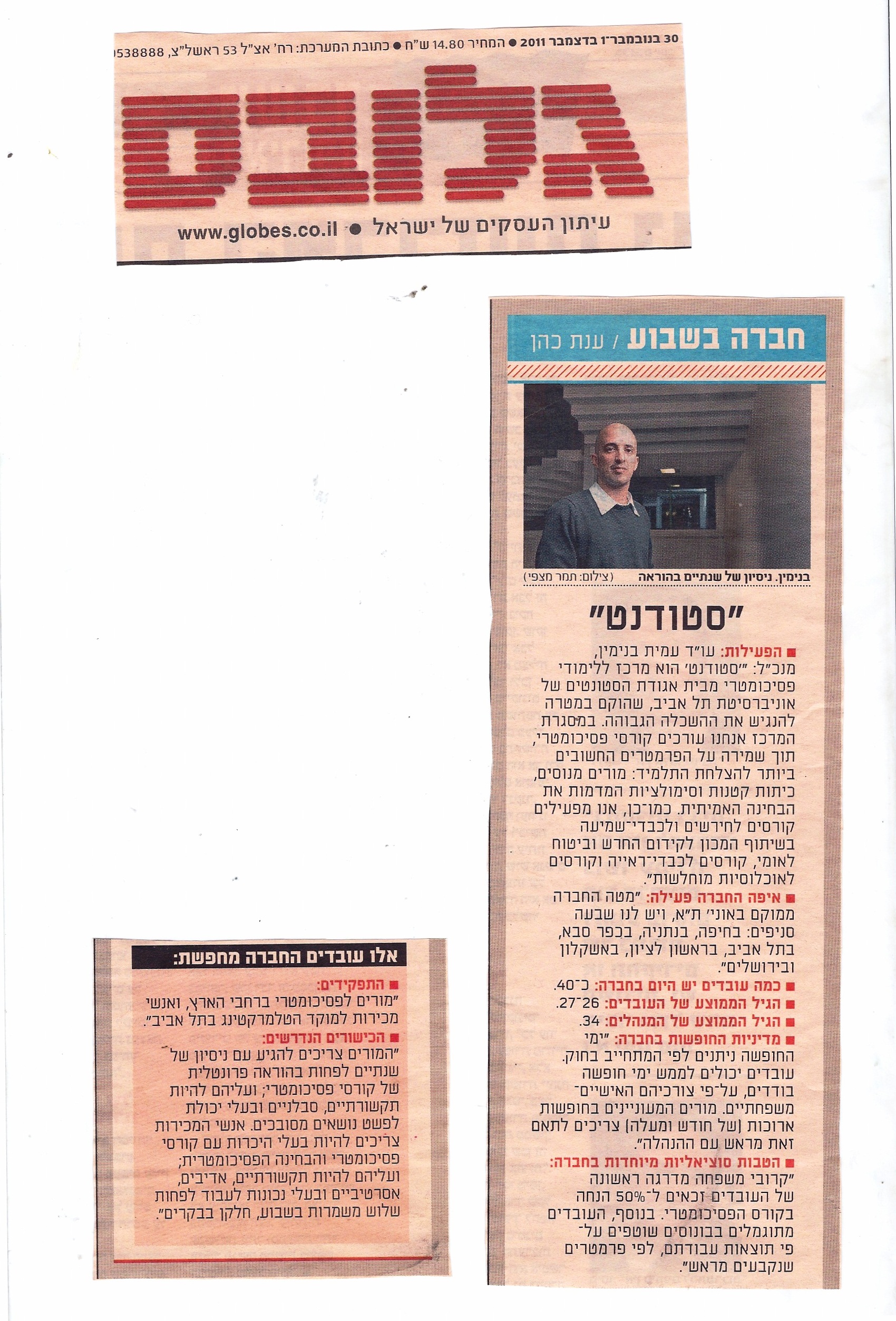 מדור חברה בשבוע – "סטודנט" מרכז ללימודי פסיכומטרי – גלובס
