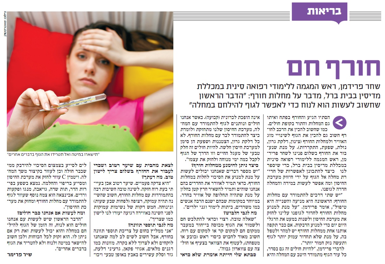 שחר פרידמן, ראש המגמה ללימודי רפואה סינית במכללת מדיסין בבית ברל, מדבר על מחלות חורף: "הדבר הראשון שחשוב לעשות הוא לנוח כדי לאפשר לגוף להלחם במחלה".