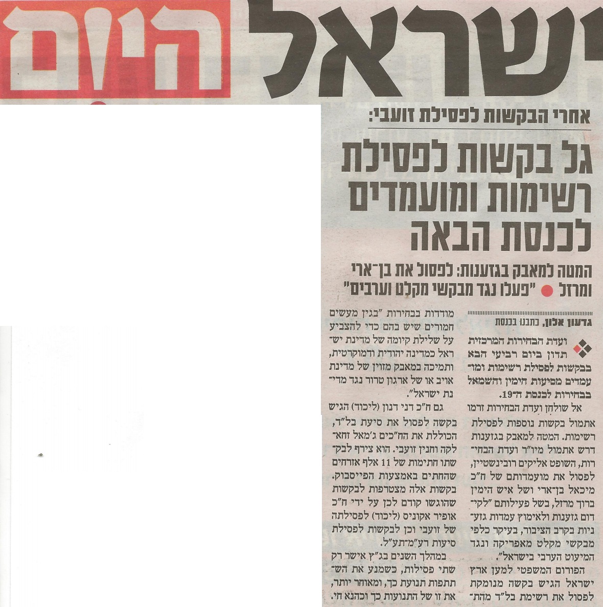 גל בקשות לפסילת רשימות ומועמדים לכנסת הבאה – ישראל היום!