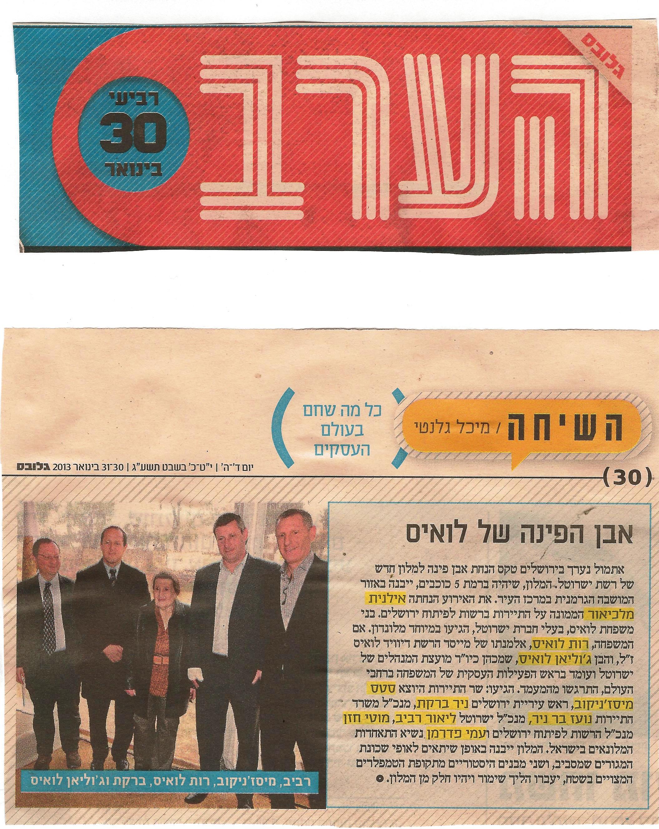 אתמול נערך בירושלים טקס הנחת אבן פינה למלון החדש של רשת ישרוטל. המלון, שיהיה ברמה של חמישה כוכבים, ייבנה באיזור המושבה הגרמנית במרכז העיר. את האירוע הנחתה אילנית מלכיאור הממונה על התיירות ברשות לפיתוח ירושלים.