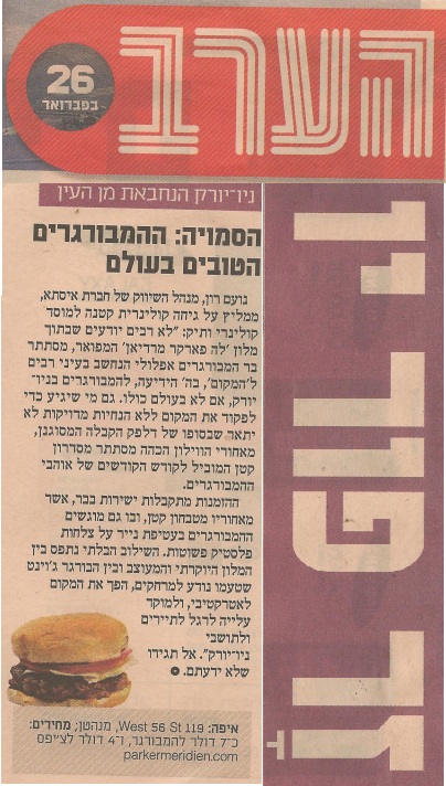 נועם רון, מנהל השיווק של חברת איסתא, ממליץ על גיחה קולינרית קטנה למוסד קולינרי ותיק – במלון "לה פארקר מרידיאן" קיים בר המבורגרים אפלולי המגיש את ההמבורגר הטעים בניו יורק, אם לא בעולם כולו.
