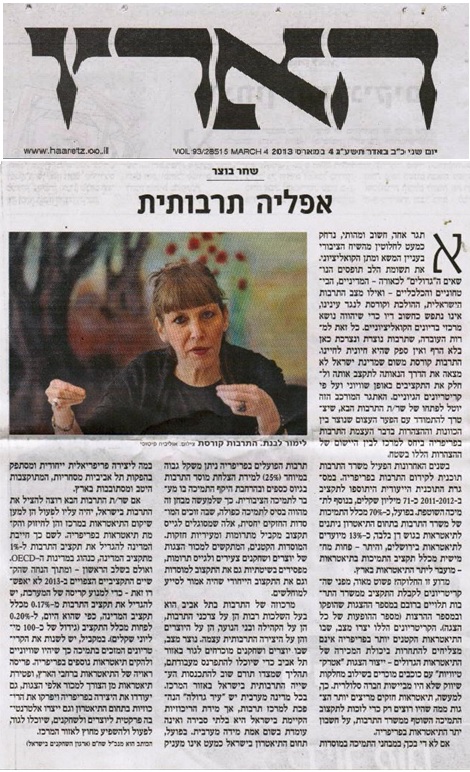 מנכ"ל ארגון השחקנים בישראל, שחר בוצר, במאמר בעיתון הארץ אודות האפליה הקיימת בהקצאת המשאבים בתרבות במרכז ובפריפרייה ובשקעה בתרבות בכלל.