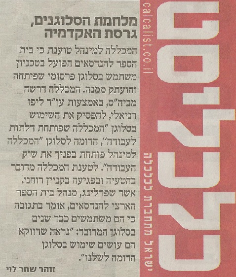 המכללה למינהל טוענת כי בית הספר להנדסאים הפועל בטכניון, משתמש בסלוגן פרסומי שפיתחה והועתק ממנה.