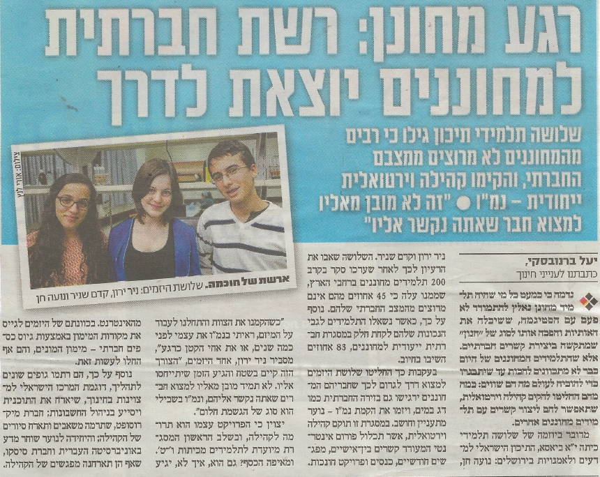 שלושה תלמידי "יאסא – התיכון הישראלי למדעים ולאמנויות בי-ם" יוזמים הקמת קהילה חברתית למחוננים בלבד – נמ"ו: נוער מתעניין וחושב